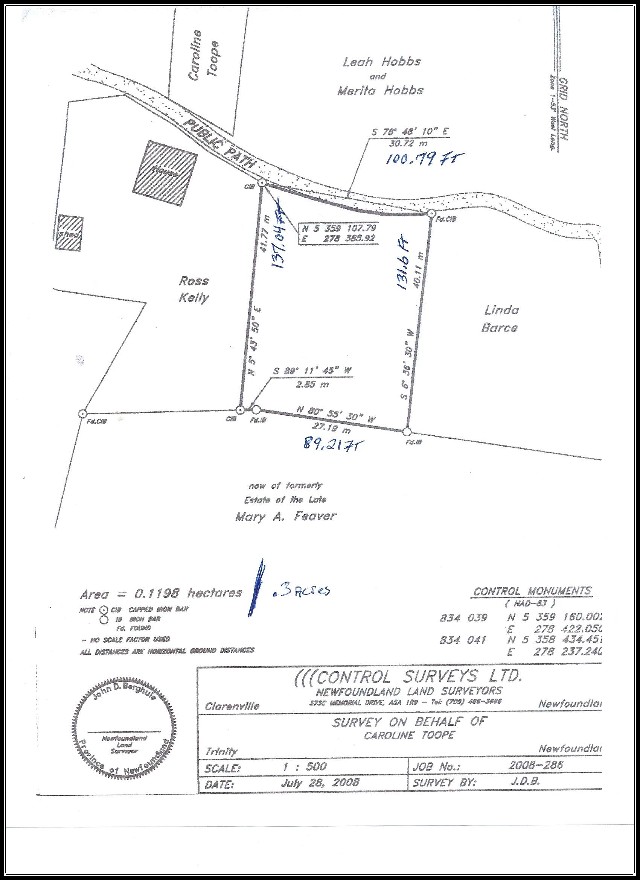 This particular parcel of .3 acres includes frontage on Clinch’s Lane and the “hillock” would be a spectacular place upon which one can build a house and set out a garden. Those interested in adding to the size of this land, an adjacent 1.91 acres with frontage on Church Rd is also available to purchase and the price of that parcel is $150,000. The views from this land are among the best on the Island of Newfoundland, overlooking the historic town of Trinity, Trinity Harbour and Trinity Bay. When walking on this land, one may be inspired to sing the Ode to Newfoundland as the site is so spectacular. Non residents can check out the words to the ode at http://en.wikipedia.org/wiki/Ode_to_Newfoundland and check out the actual singing of the ode at http://www.ucs.mun.ca/~hrollman/ode.html