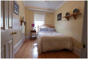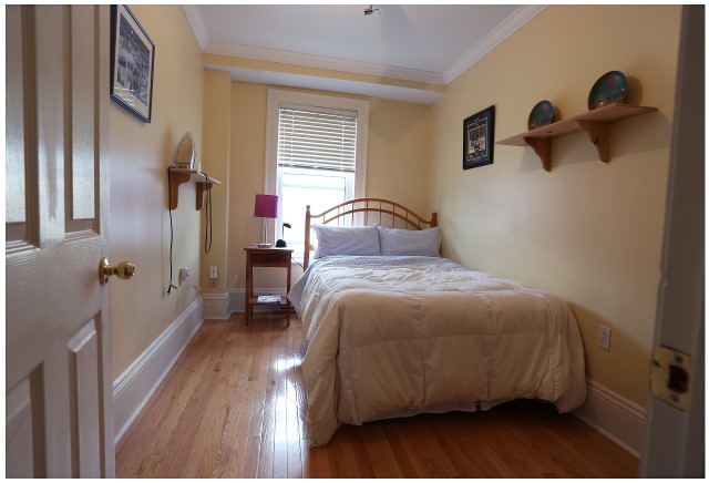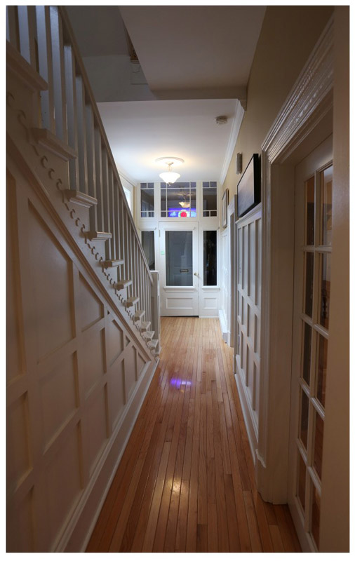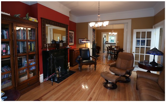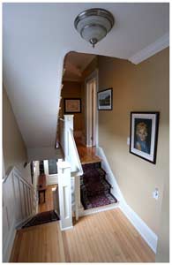 Are you searching out a downtown property, which has been fully restored with contemporary kitchens and bathrooms, and off street parking, then you need to check out 25 Bond Street. The main level has a convenient porch and spacious hallway graced by the original staircase. The traditional living and dining room are divided by original paneled pocket doors and both rooms have decorative slate fireplaces. The floors are hardwood and the baseboard and door mouldings are original and this is the case throughout most of the house. The kitchen with in floor heating and kitchen aid appliances is very spacious with 4 ft by 6 ft granite island and corian on main counters. It also includes an eating area with access to the flagstone garden and access to a sunroom on the western side. The main level is complements with a half bathroom.