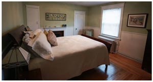 The exterior has a fitting facade with cape cod siding and band sawn pine trim