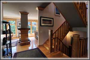 Designed by Collette Nap in 1998 for a large busy family, this executive home features beautiful hand-crafted walnut and cherry-wood trim, local stone and slate, birch wood floors with in-floor heating on all three levels and 4 patios for full fresh-air enjoyment. Only three houses on the cul-de-sac, results in privacy and quiet to the natural tree-lined property.