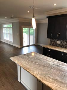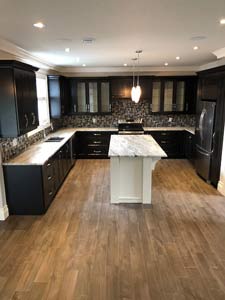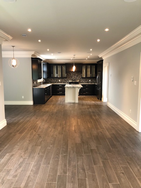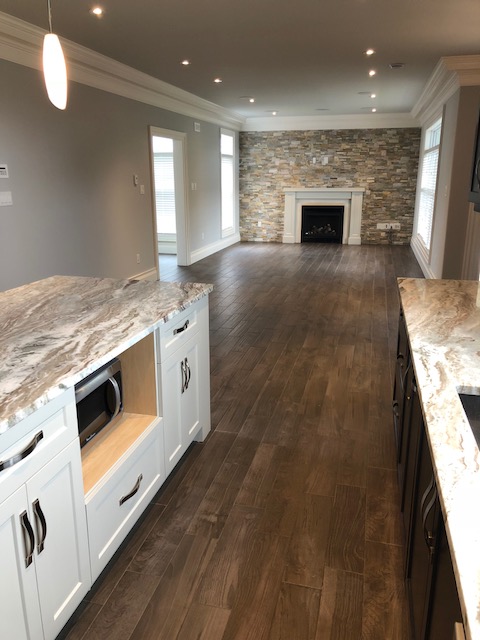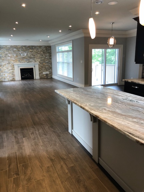 1500 sq ft on main with huge open concept kitchen, eating area and family room with propane fireplace. In addition there is a stand alone dining room for those more formal functions. 9 foot ceilings on main with custom ceiling moldings and coves.