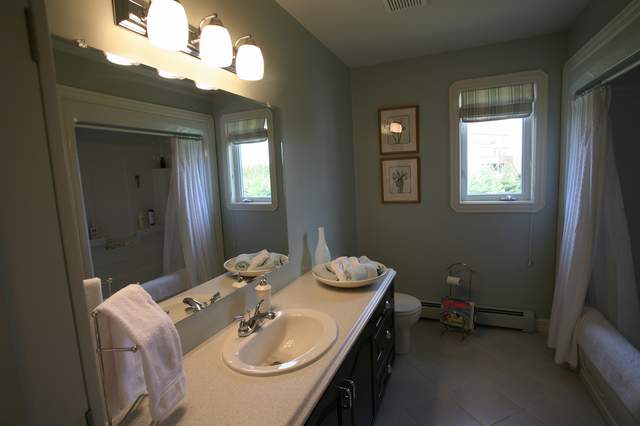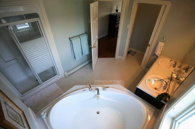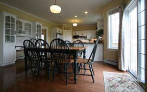 The adjacent eating area, which overlooks the garden and connects to the deck through patio doors, can accommodate a large group for a casual meal. The open concept is extended to include a cozy family room with propane fireplace.
