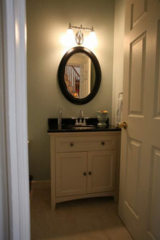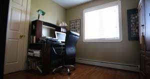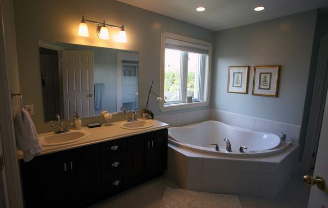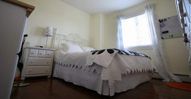 The adjoining kitchen is very well appointed and the sleek black granite counters really complements the white façade on the cabinets. The kitchen pantry, located between the fridge and stove is a bonus and there is a large granite top peninsula which can be used as an area for food preparation and for enjoying a meal, or simply an area to speak with guests while dinner is being prepared.