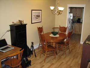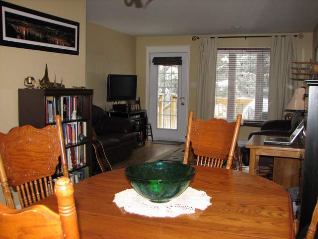 The layout is very functional with a kitchen leading to an open concept eating area / living room, that leads to a pressure treated deck at the back of the house, which borders an evergreen tree line.