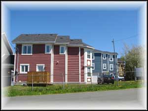 End unit townhouse with two storey bay window, and the only connection with the adjacent unit is a carport roof. Otherwise the house is detached.