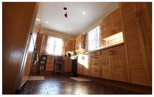 The spacious front porch opens to a foyer, that is flanked on one side by a cosy den, another side by a formal living room overlooking the spacious grounds, with stone fireplace, and a third side by a breakfast room. The back of the house has a kitchen that was designed by Phillip Pratt in his formative years as an architect and built by Artistic. The formal dining room joins the kitchen to the living room. There is also a two piece powder room on the main level.