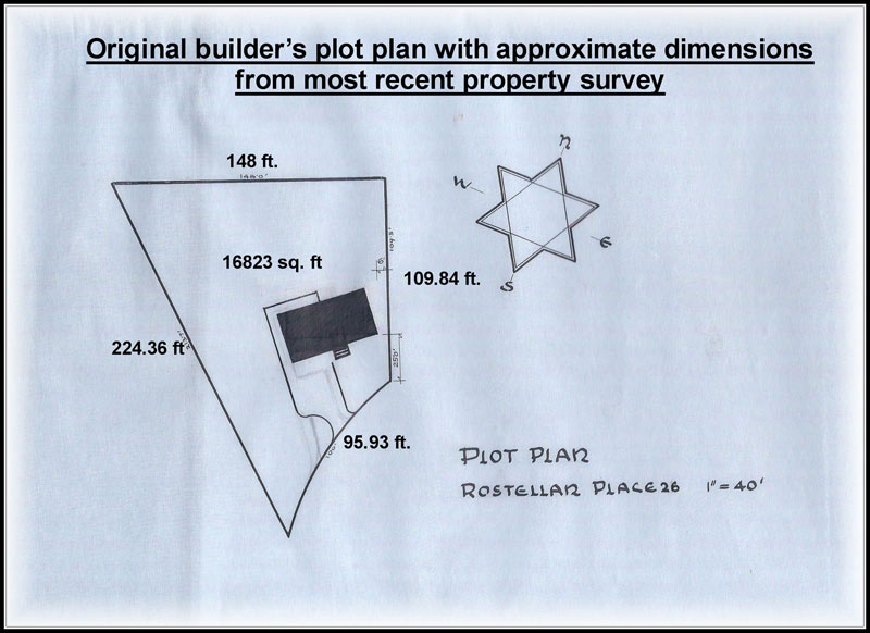 Enjoy the remaining photos below and note that a copy of the original plot plan can be seen at the end of the photos along with notation of the approximate dimensions of the house.