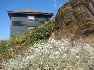 The structure, albeit rustic, has a sense of belonging with the sea, the hillside and the flora and fauna surrounding the house which includes an abundance of many kinds of wild berries.